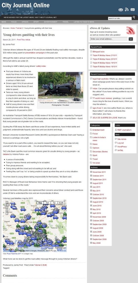 The road toll remains an ongoing concern. While responsibility on the roads applies to all of us, a number of young people have an attitude that suggests invincibility. I wrote this piece because, as a young person myself, the issue resonates loudly.