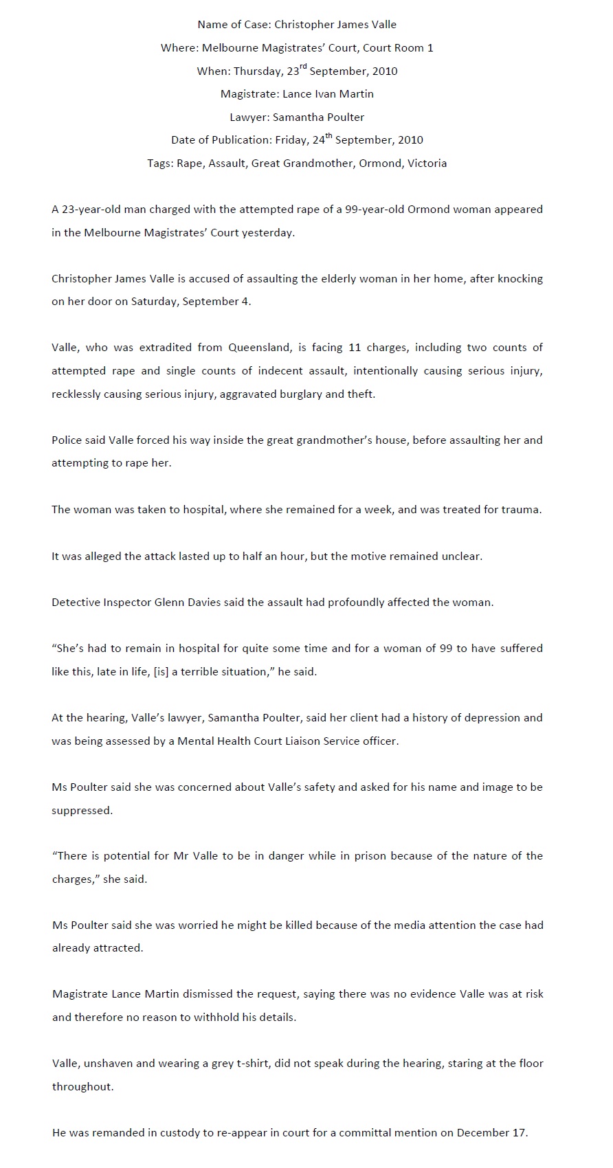 A readable PDF version can be found here: Court story – Christopher James Valle.