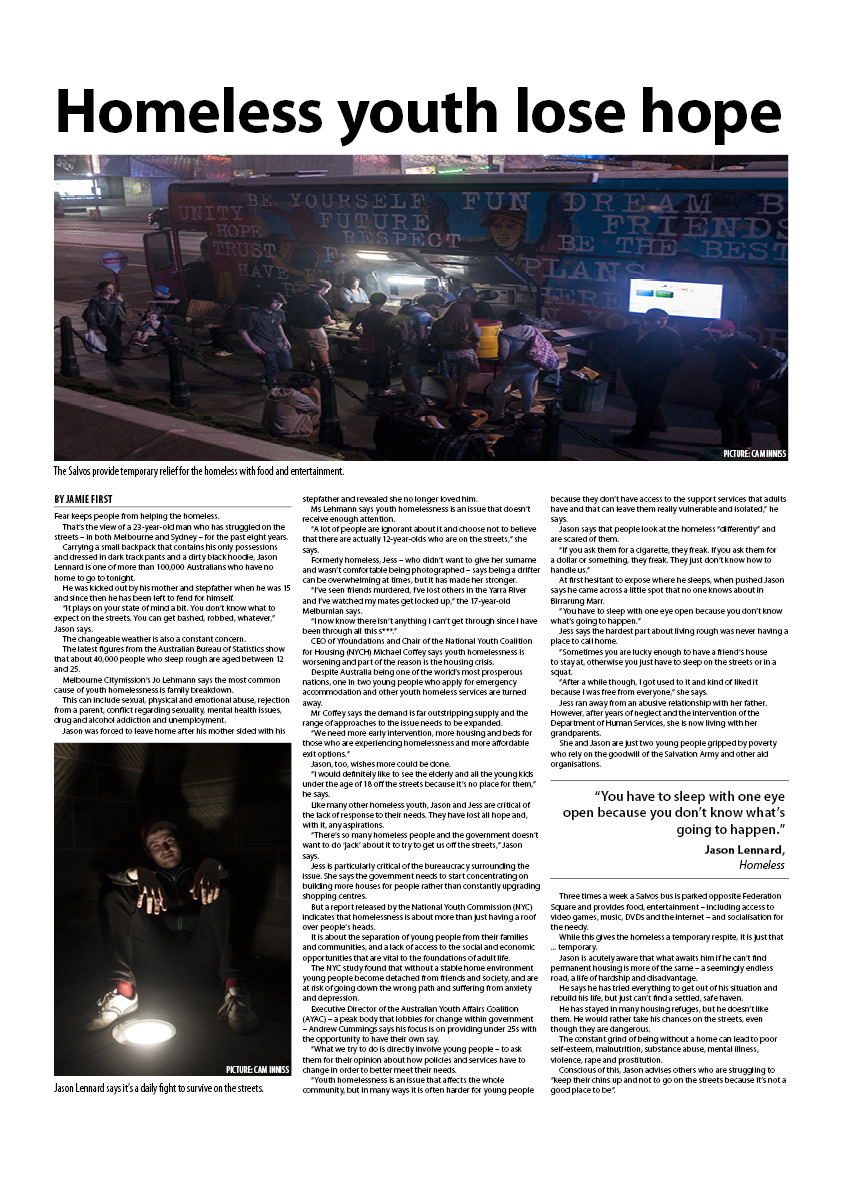 Australia may be regarded as “the lucky country”, but some are luckier than others. Homelessness is an escalating problem as the population grows. Of particular concern is the number of young people sleeping rough.