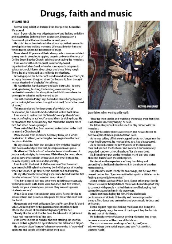 When I was in Year 9, I was asked to participate in the Lord Mayor’s Charitable Foundation, which allocates money to charities. One of those charities was Urban Seed. Urban Seed helps educate children about drugs and homelessness, feeds the destitute and supports addicts. This not-for-profit organisation had a major impact on me because of its warm and inviting atmosphere and the work it was doing. All those I came across – namely the staff and those being helped – seemed genuinely happy to be there and I have never forgotten that. I thought it would be the perfect place to speak with someone who works there and gain some more insight into them and what makes the organisation so special.